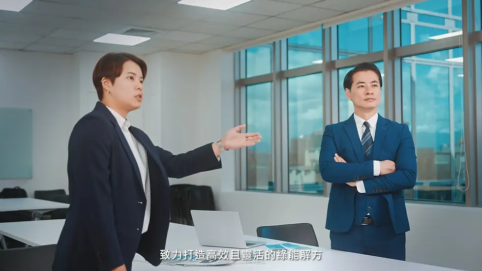 在拍攝規劃上,影片主要結合企業辦公室情境與能源案場畫面。